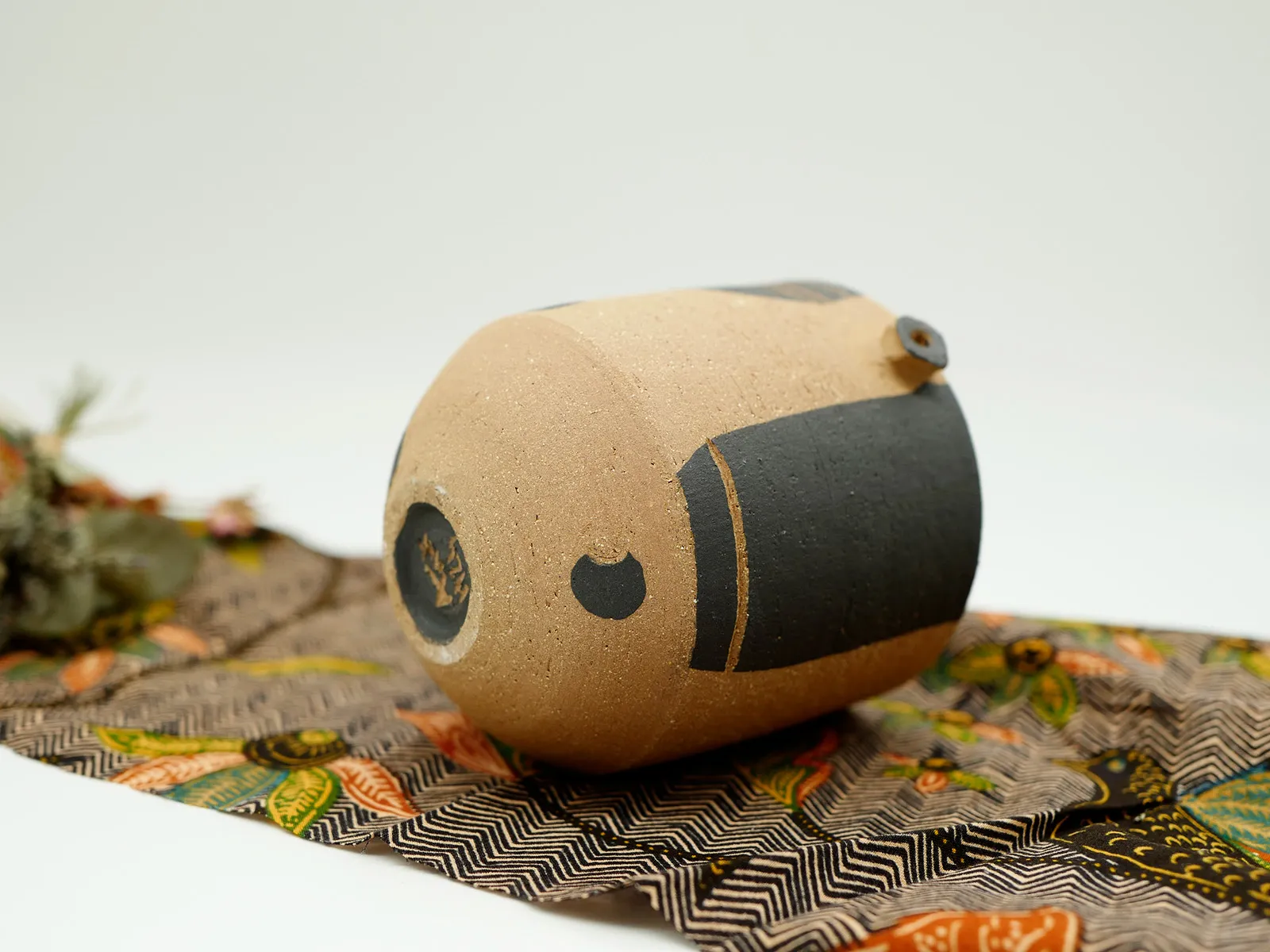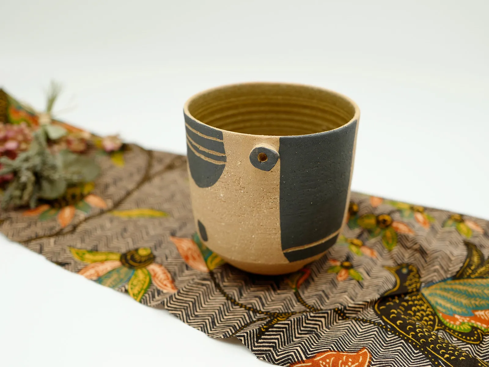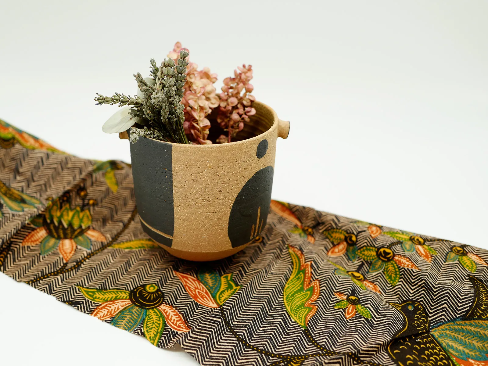 Pot à plante en grès roux de Treigny, légèrement pailleté. Il est émaillé à l’intérieur pour éviter les mauvaises surprises. De forme simple, ses anses lui offrent son caractère. Le motif Atlas vient rythmer sa paroi. Vous pourrez y glisser vos pots en plastique ou directement rempoter vos plantes dedans. Ces pots de fleurs sont en édition limitée. Attention, usage alimentaire proscrit.