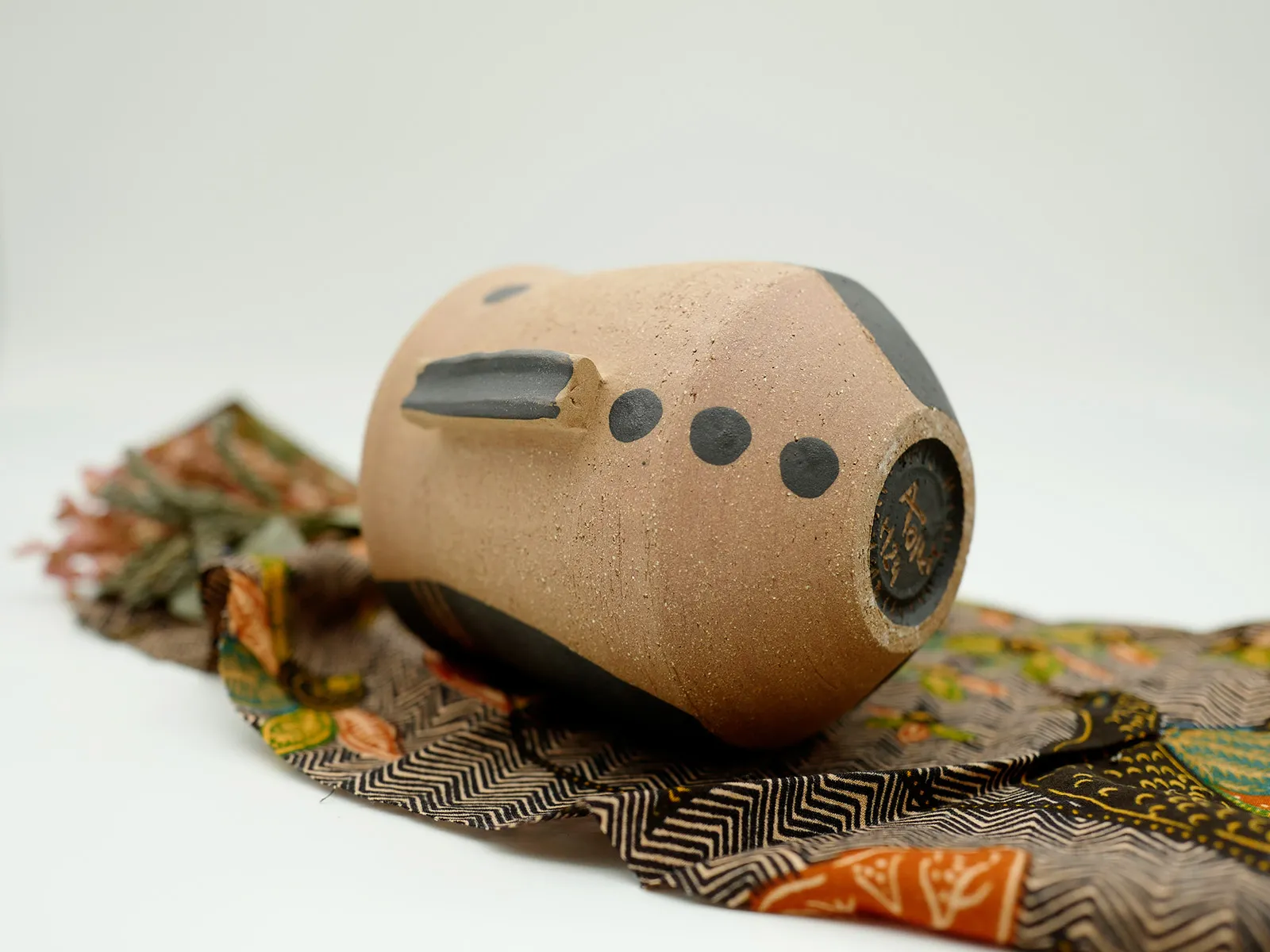 Pot à plante en grès roux de Treigny, légèrement pailleté. Il est émaillé à l’intérieur pour éviter les mauvaises surprises. De forme simple, ses anses lui offrent son caractère. Le motif Atlas vient rythmer sa paroi. Vous pourrez y glisser vos pots en plastique ou directement rempoter vos plantes dedans. Ces pots de fleurs sont en édition limitée. Attention, usage alimentaire proscrit.