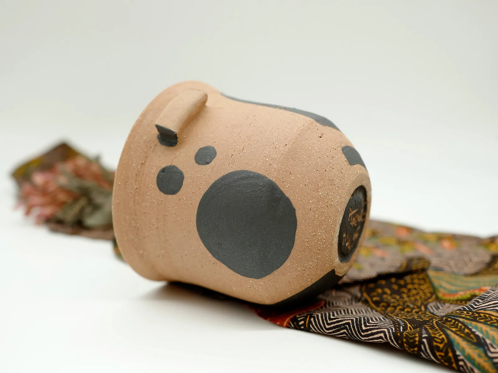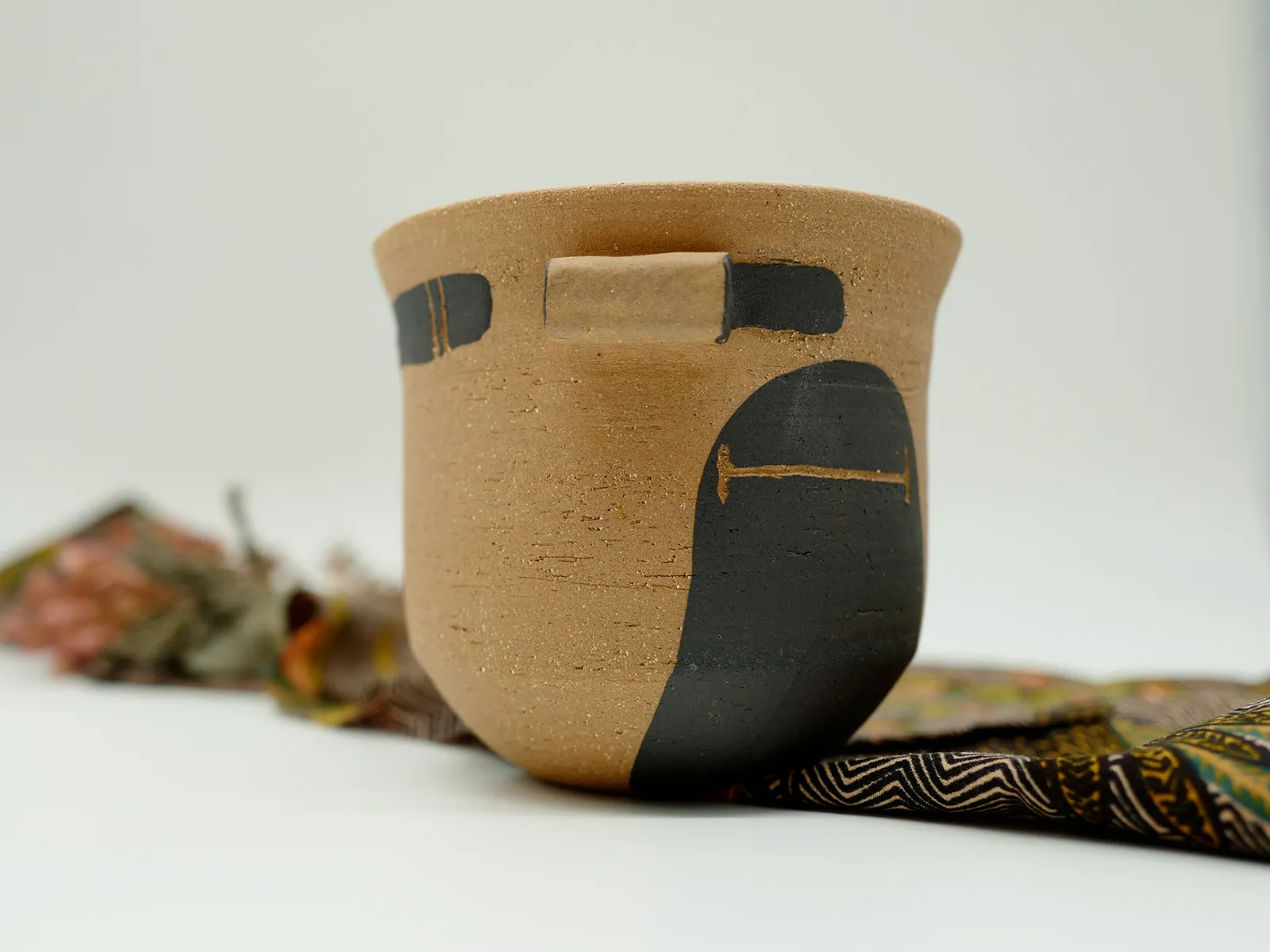 Pot à plante en grès roux de Treigny, légèrement pailleté. Il est émaillé à l’intérieur pour éviter les mauvaises surprises. De forme simple, ses anses lui offrent son caractère. Le motif Atlas vient rythmer sa paroi. Vous pourrez y glisser vos pots en plastique ou directement rempoter vos plantes dedans. Ces pots de fleurs sont en édition limitée. Attention, usage alimentaire proscrit.